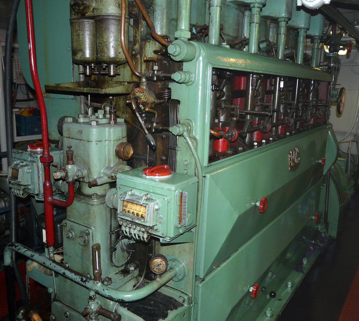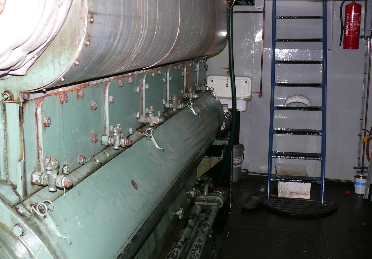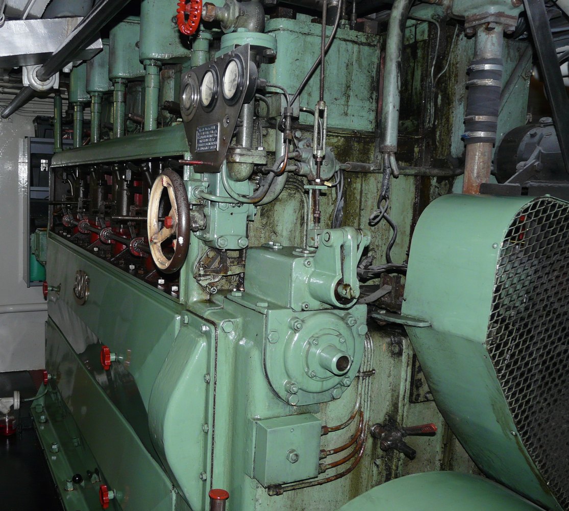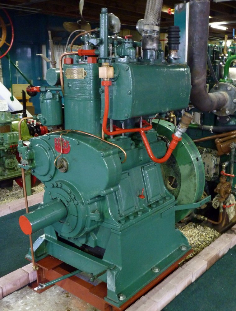 door Deutz. De motor werd gebouwd in 1906 en levert circa 15 pk. Tenminste, dat zegt het informatie bordje bij de motor.