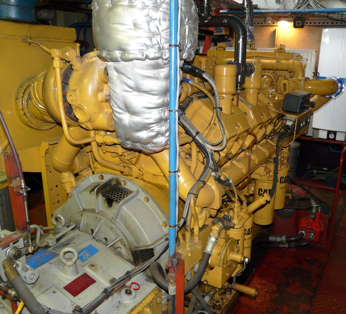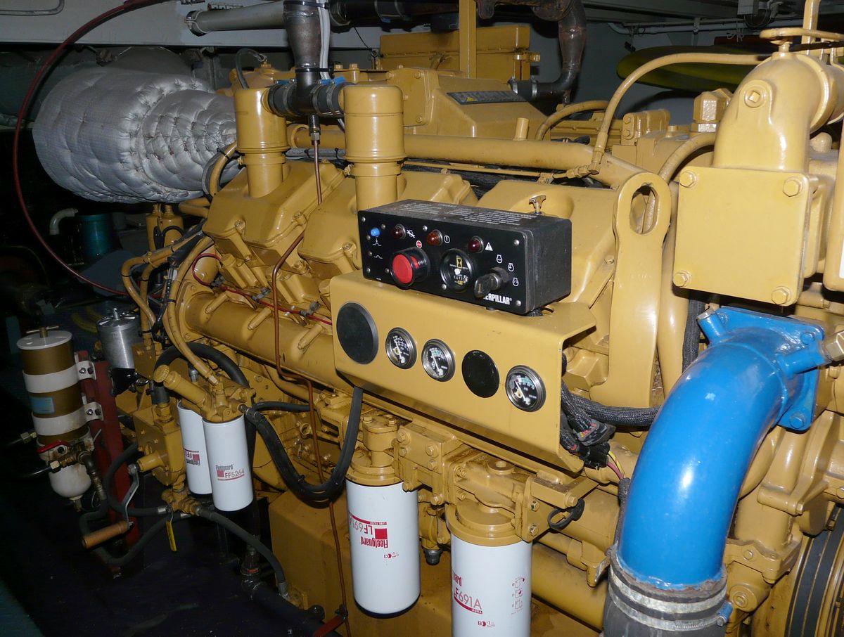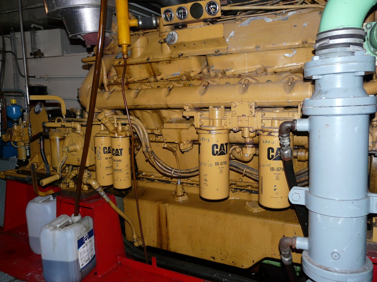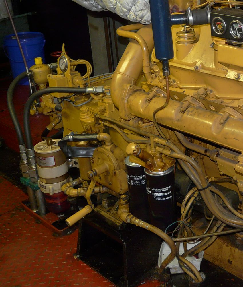 Naast de keerkoppeling is een fors brandstoffilter te zien.