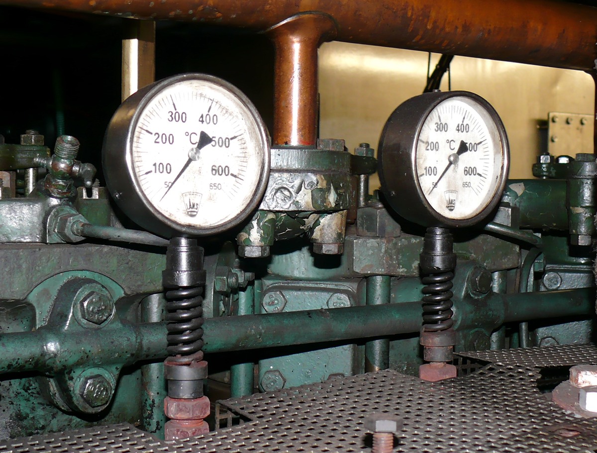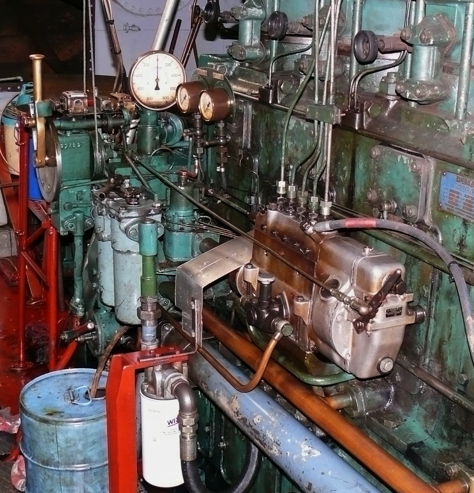 Op de voorgrond twee Knecht spleetfilters voor de smeerolie.