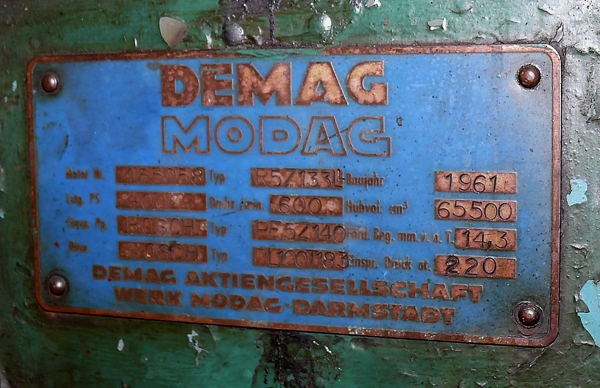 Zowel de DEMAG (Deutsche Maschinenbau-Aktiengesellschaft) als MODAG (Motorenfabrik Darmstad AG) zijn inmiddels ter ziele.