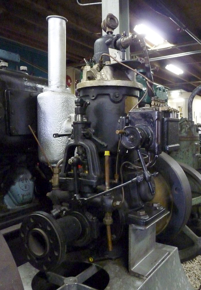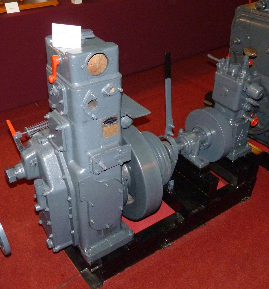 Een 1 cilinder La Meuse gekoppeld aan een watergekoelde luchtcompressor.