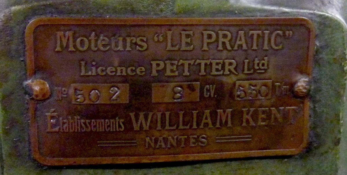 Deze motor van het merk 'Le Patric' was voor stationair gebruik en leverde 8pk bij 550 tpm.