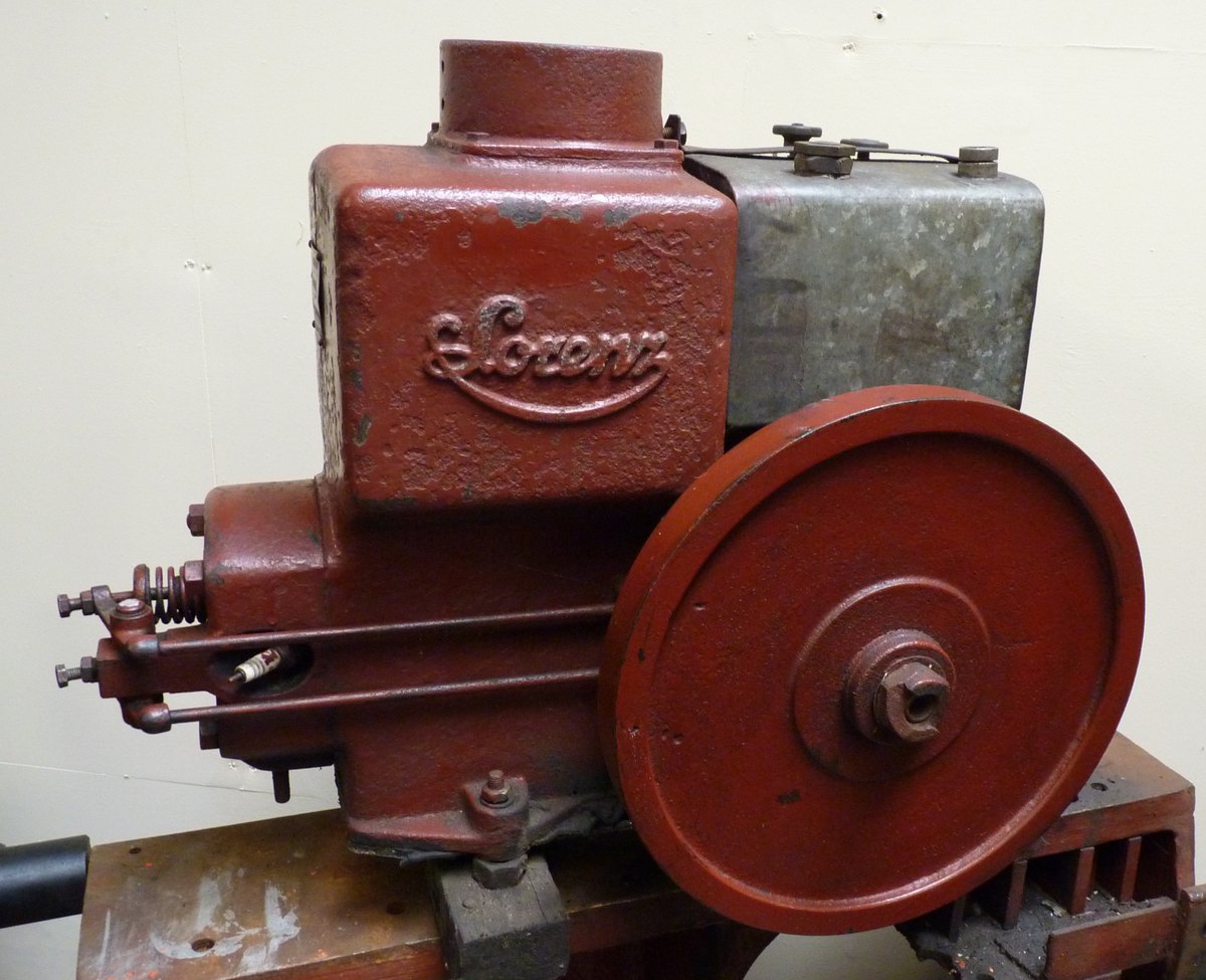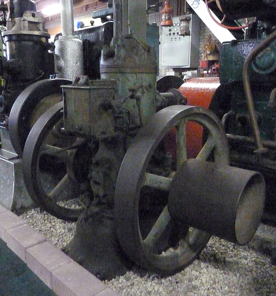 petroleummotor van het fabrikaat 'Lorenz'. De fabriek was gevestigd in Kromeriz, Moravia,