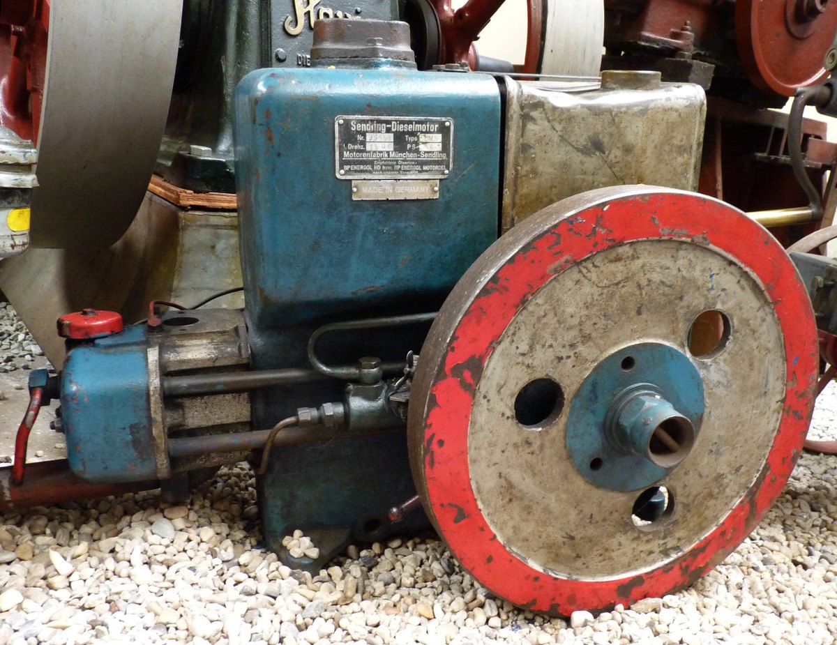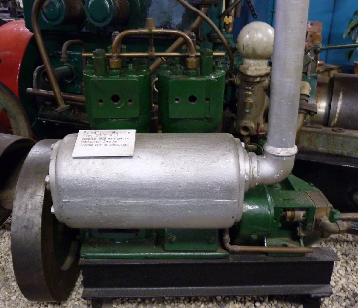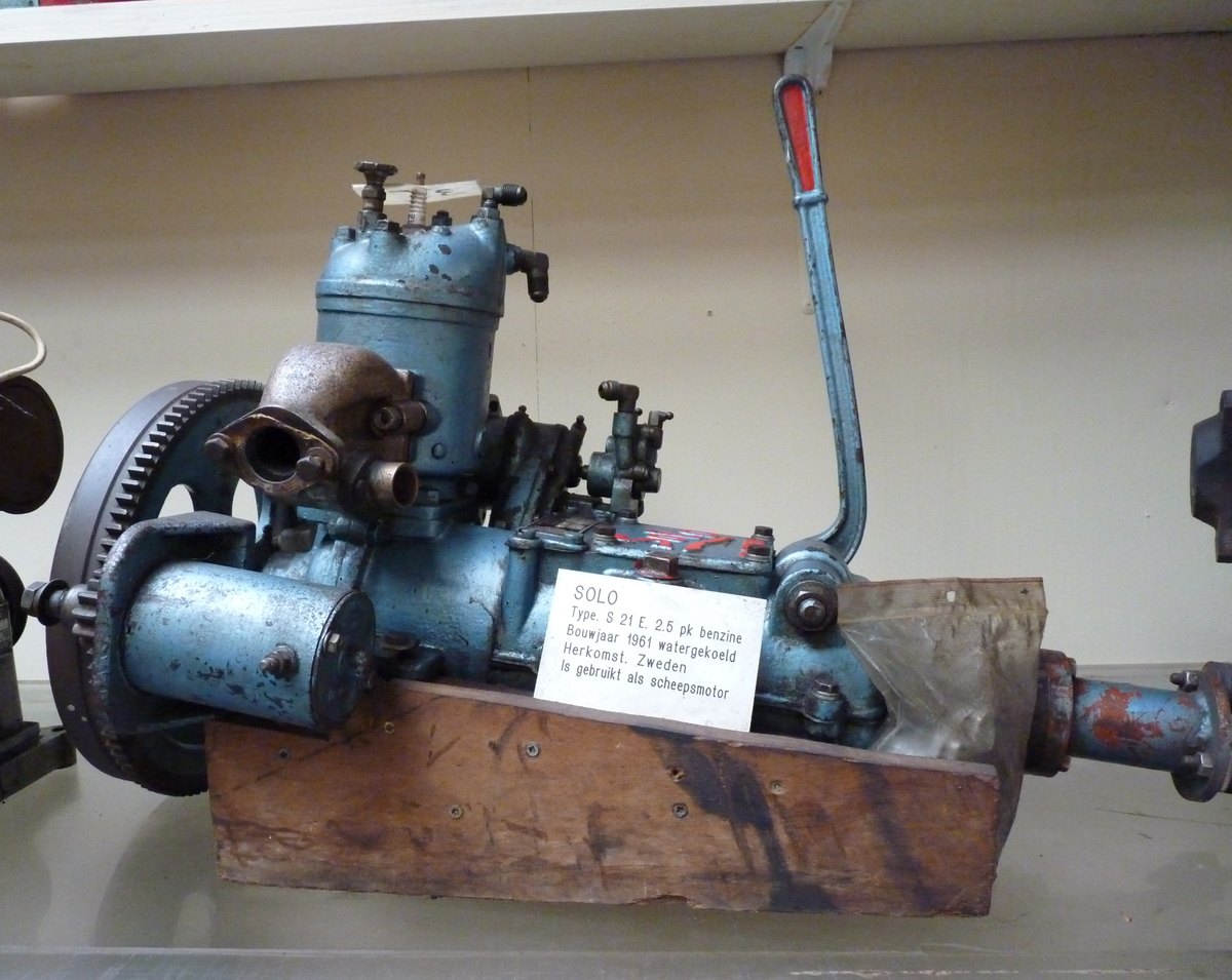 Een 1 cilinder Steywal gloeikopmotor. De SteijWal fabriek, Rotterdam werd opgericht door