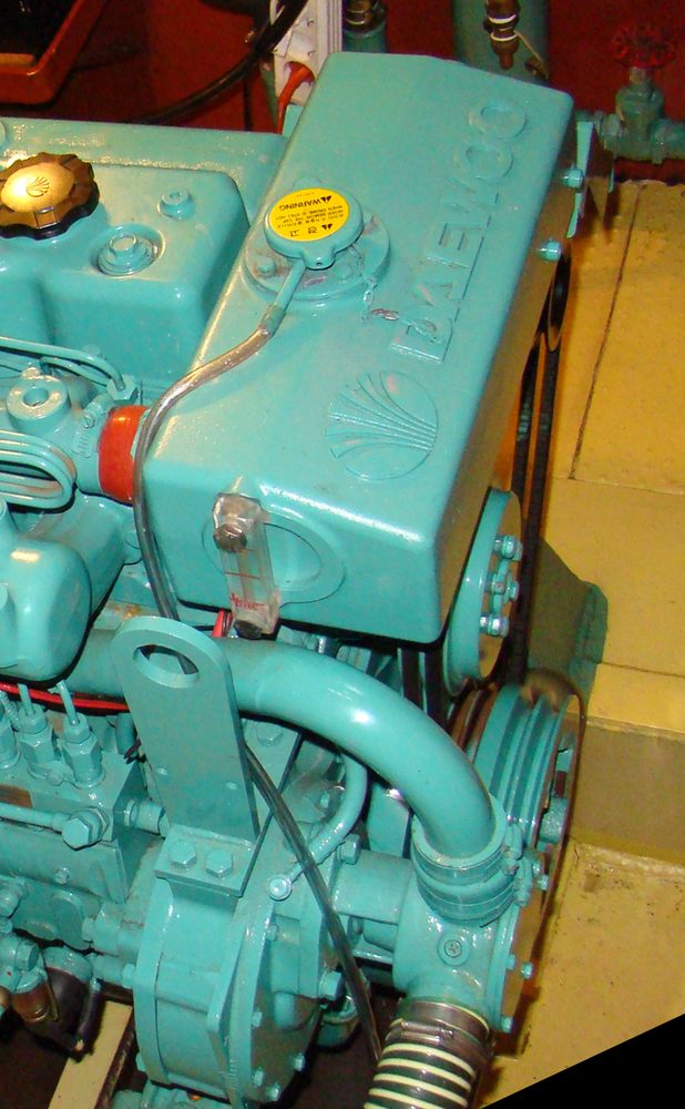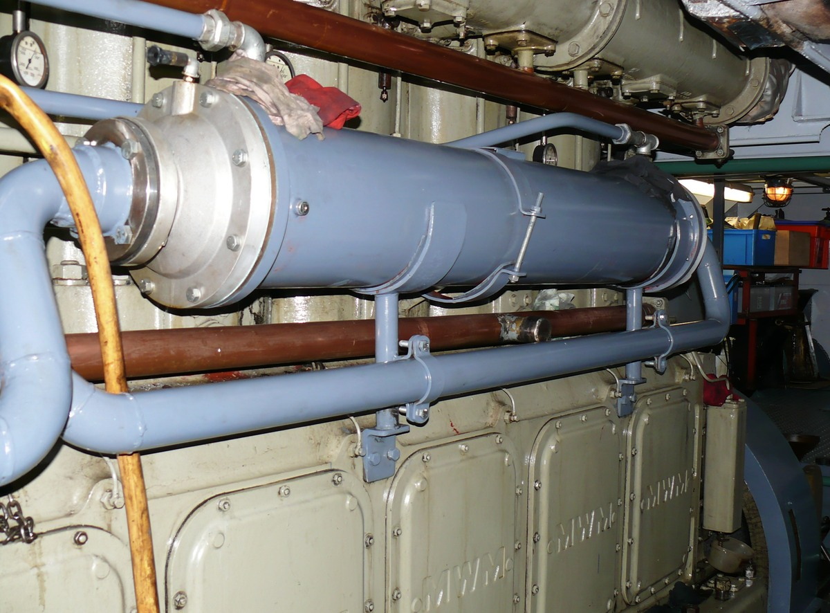 Het dikke cilindervormige deel hier in de foto is de warmtewisselaar voor de motor (de motorkoeler), de dunne is de
