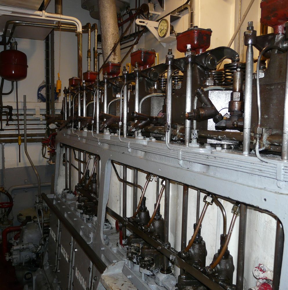 motor stamt uit 1958 en doet nog altijd dienst in een actieve duwsleepboot.
