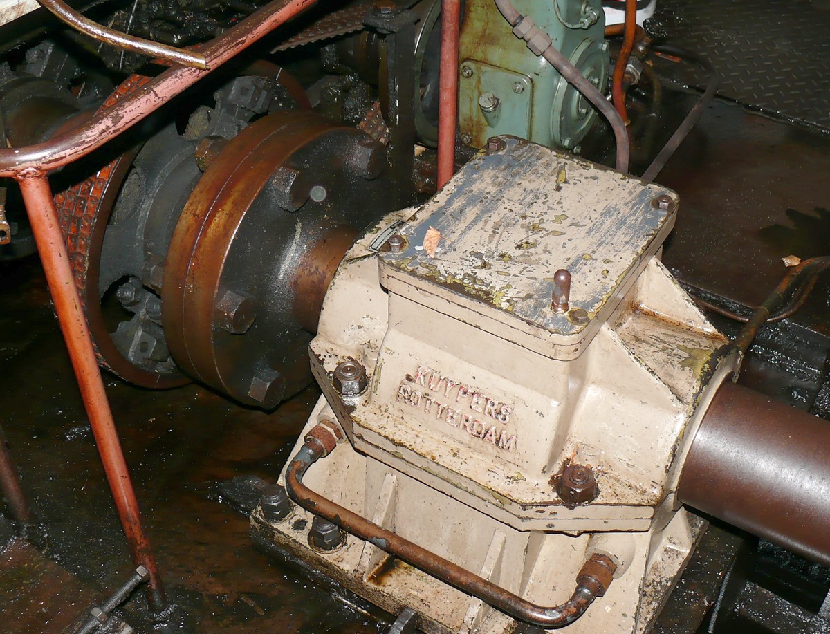 De hoofdmotor wordt, behalve voor de voortstuwing ook gebruikt voor het pompen. Vandaar waarschijnlijk dat men het meedraaien van de schroefas