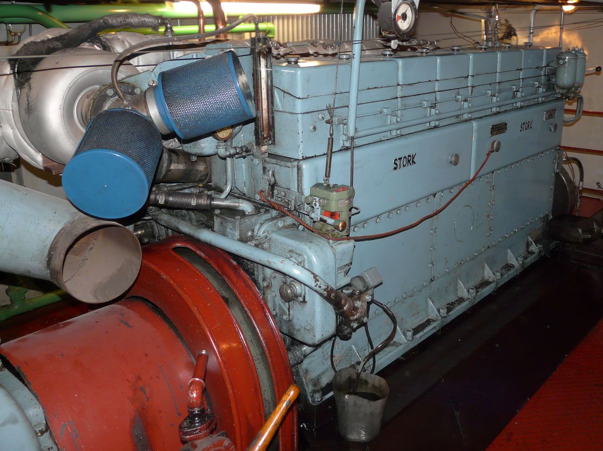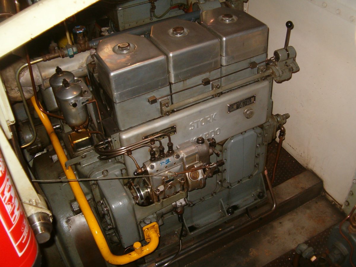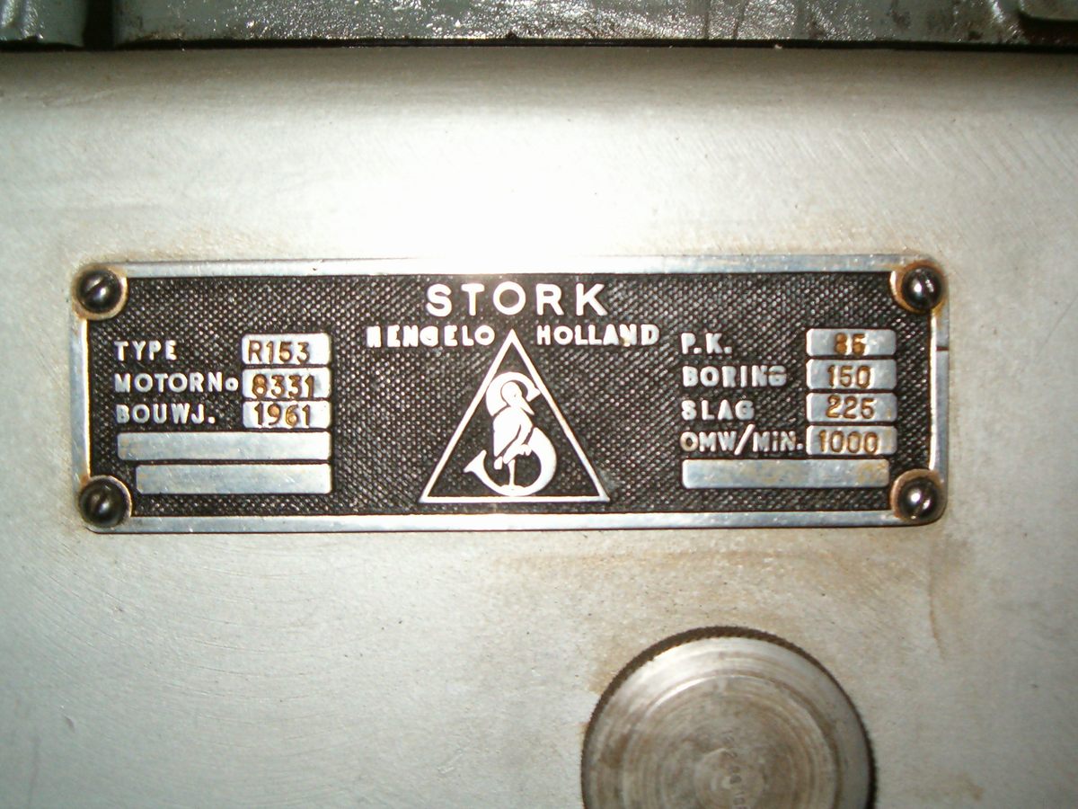 Een Stork-Ricardo van het type R153. 85 pk 1000 tpm. Gewicht ca. 1700 kg.