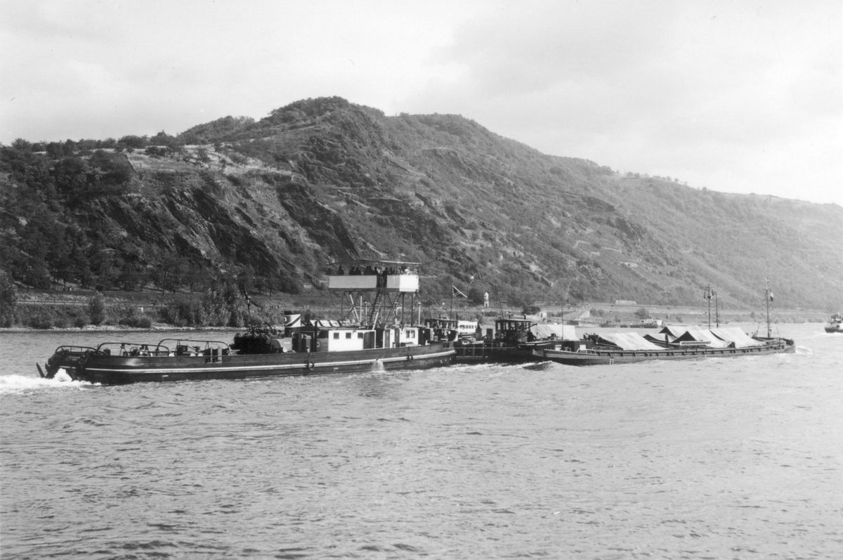 De WASSERBUFFEL was de eerste nieuwgebouwde duwboot op de Rijn.