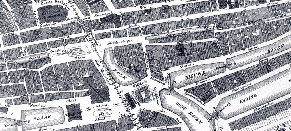 tussen de Groote Markt en de Kolk is met een stippellijn