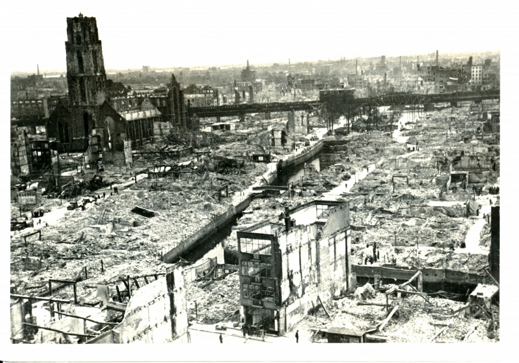 Na het bombardement wordt de Kolk gedempt met het puin dat volop