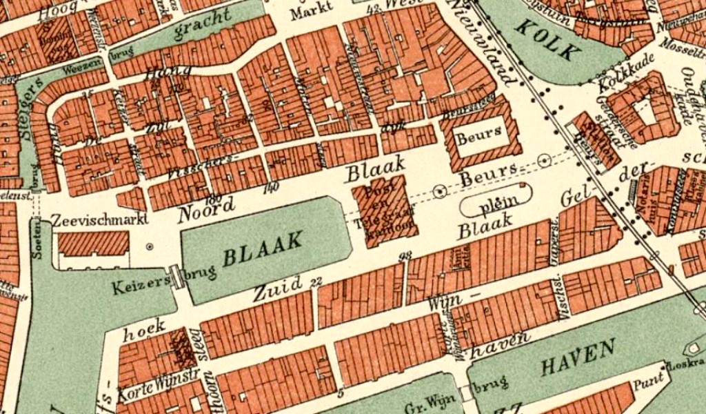 Haven naar de Maas. De kade aan de oostzijde van de Kolk heette de