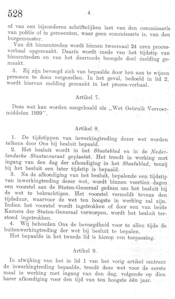 De "Wet Gebruik Vervoermiddelen" van 1939 is bij de "Wet van 2 december