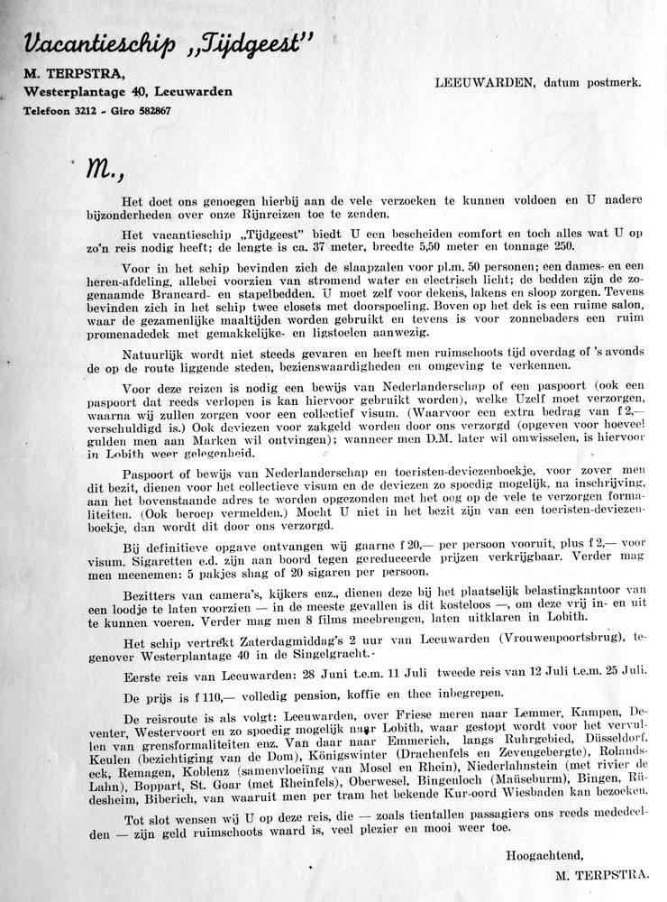 de reis bedroegen toen 35 gulden per week, daarbij diende men echter