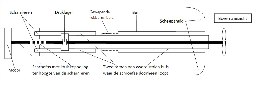 Heeft men voldoende water onder de kiel dan kan men, naar behoefte, de schroef een eindje lager stellen.