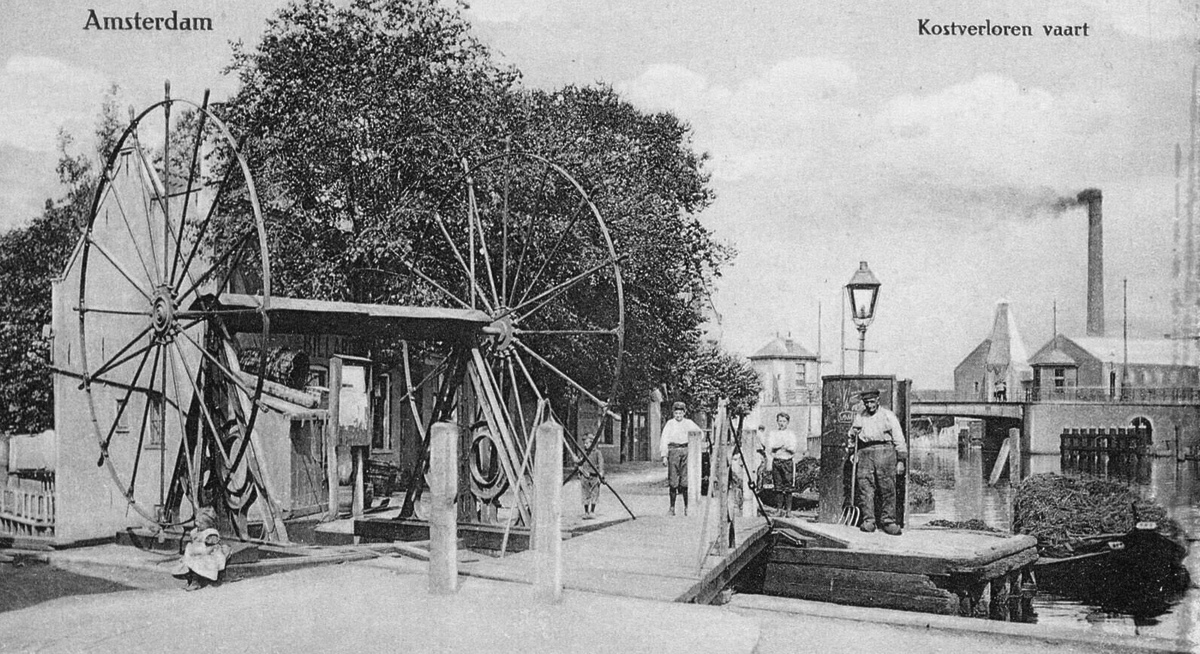 veerhuis'. De 'belangrijke' Overtoom in de Kostverlorenvaart moest het dus zonder rad stellen, terwijl die van de Slotervaart, bestemd voor