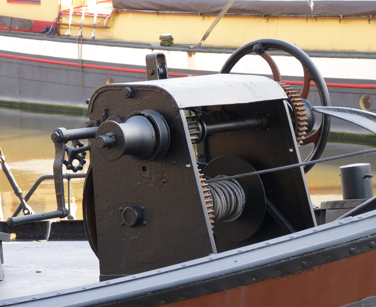waldraad en ankerketting. Door zich met de lier naar dit, van een springslot voorzien, knooppunt te trekken, krijgt de ankerkuil de ruimte om langszij het schip te draaien.