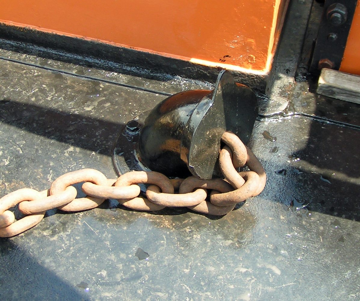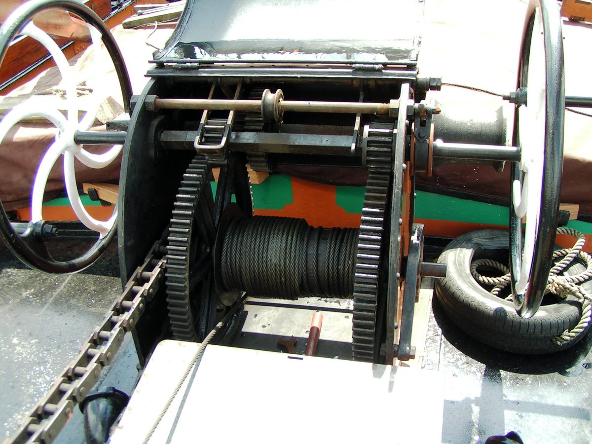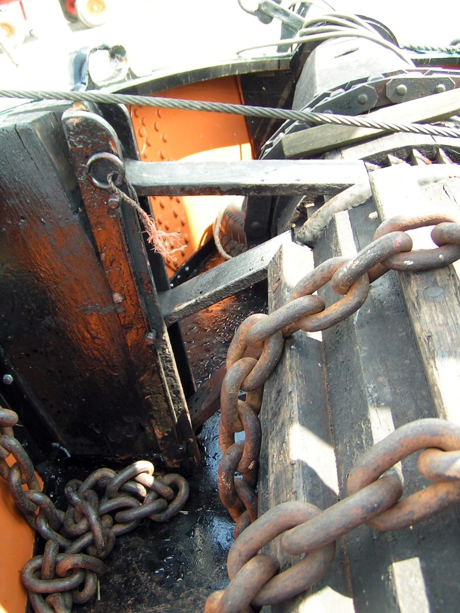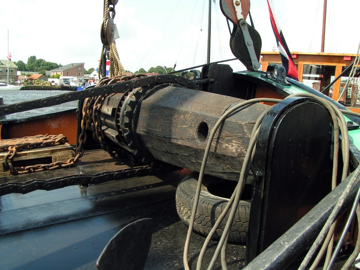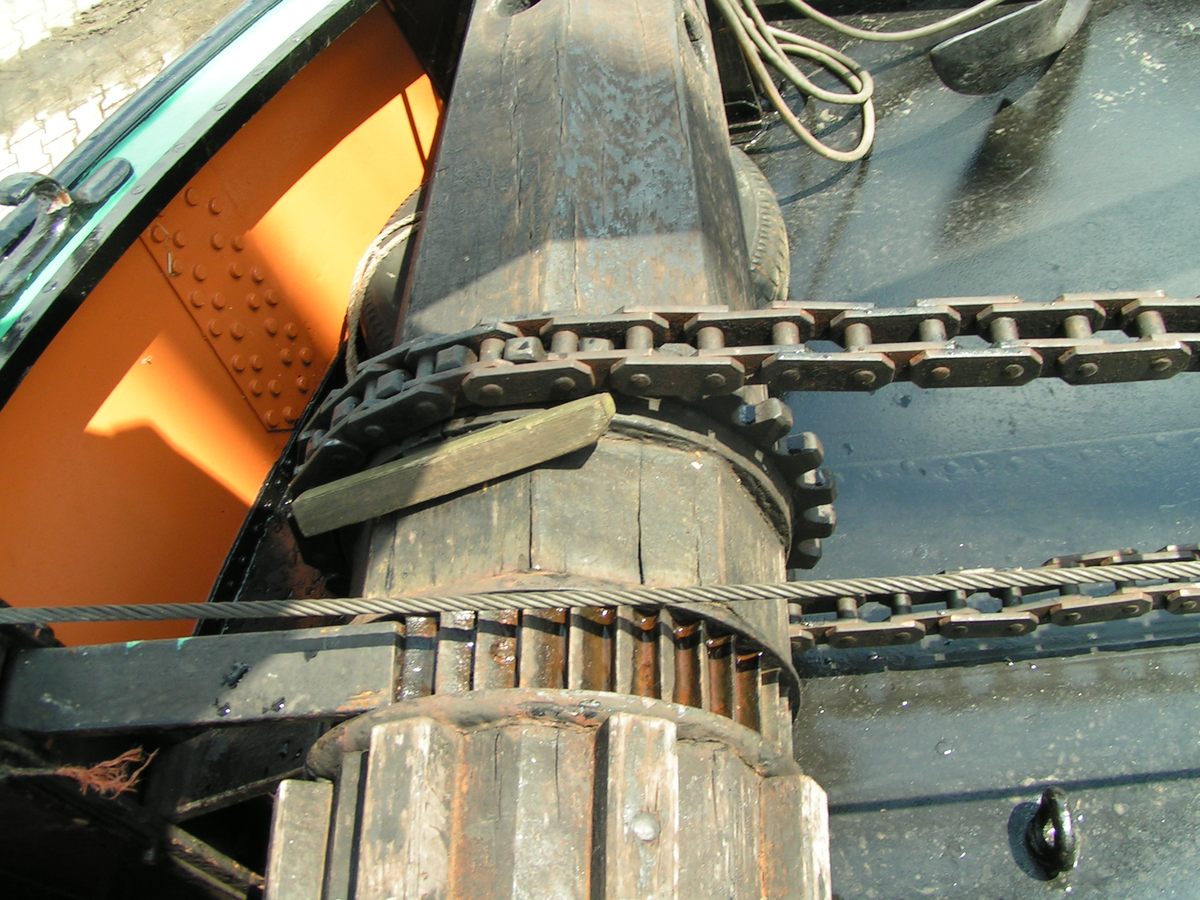 De ketting is een aantal maal rond de spil geslagen. Dit deel van de spil