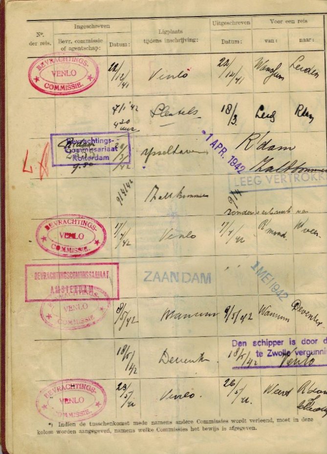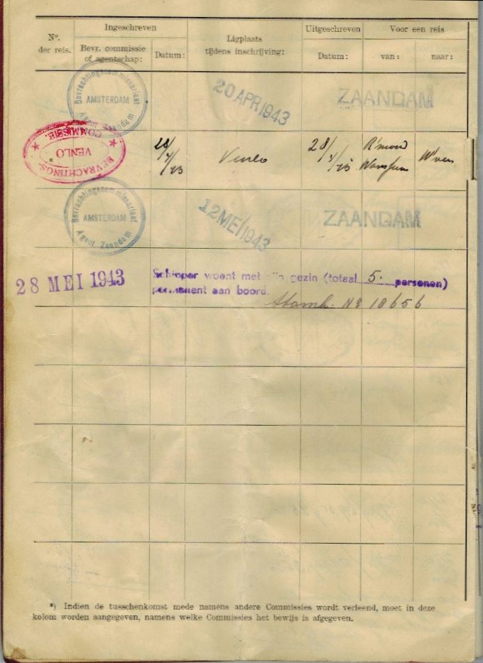 De winter van 42-43 moet de schipper in Amsterdam doorgebracht hebben. In april gaat hij