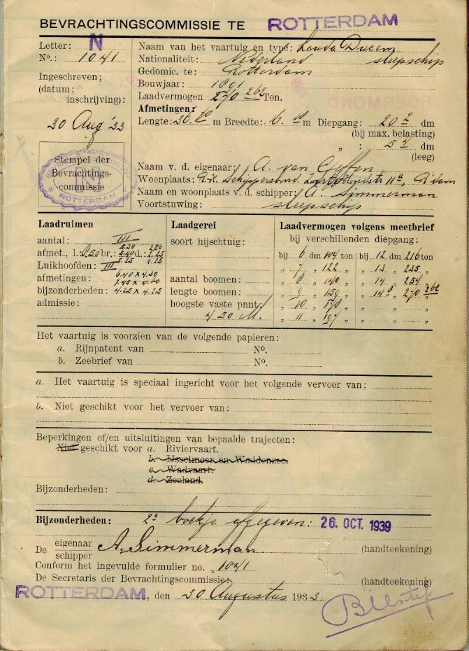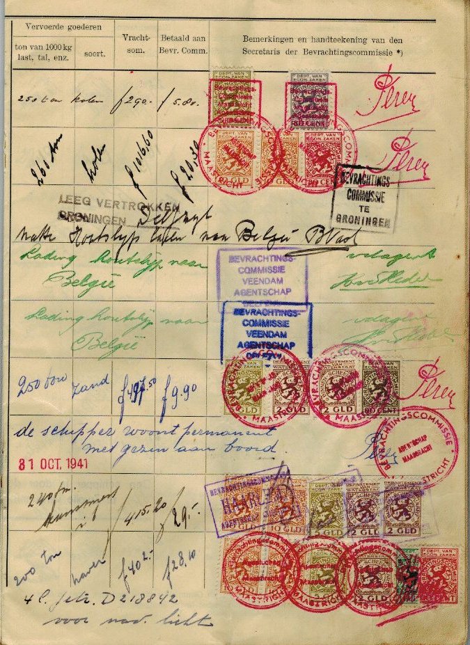 op 4-10-1939 en gaat met steenkolen van Stein naar Rotterdam. Linkerblad