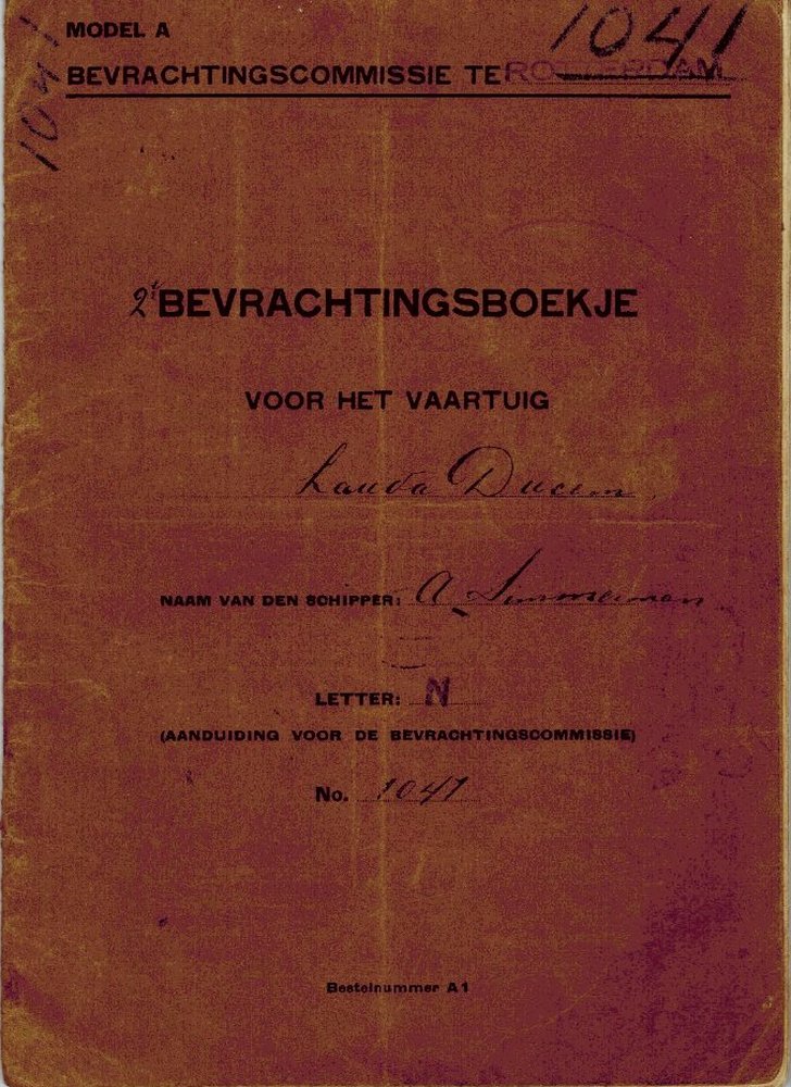 Een bevrachtingsboekje uitgegeven door de bevrachtingscommissie Rotterdam