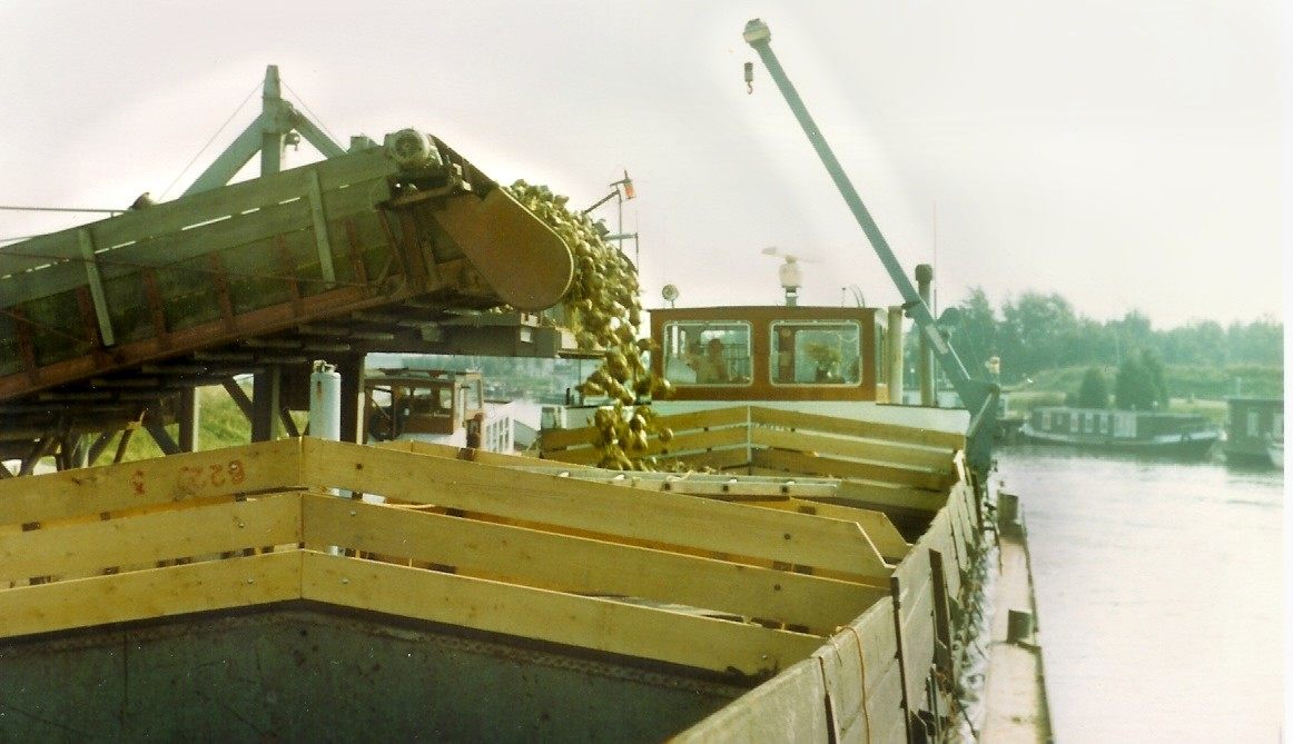 verbonden en zal zodra het laden achter de rug is, opgeklapt worden. Het is tenslotte een obstakel dat over het water uitsteekt. Voor dit object gebruikt men ook namen als bietenbrug of kiepsteiger.