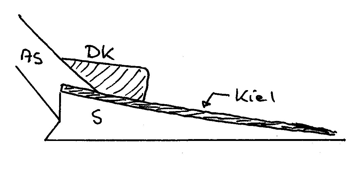 is, bestaat de steven uit de eigenlijke steven (S) en een vulstuk of