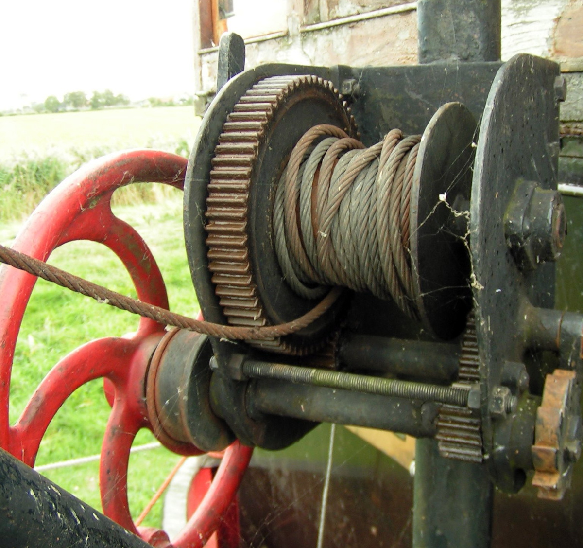 Een mooi ingekapseld liertje met een wiel, zonder slingergreep. De lier wordt gebruikt om de