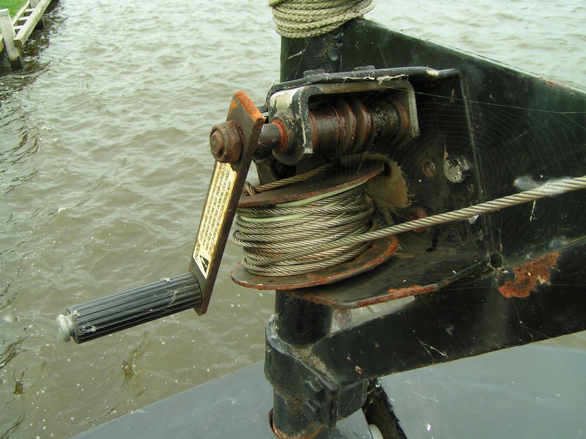 roeiboot te hijsen. Het is wel een wormwiellier maar remt zo zonder