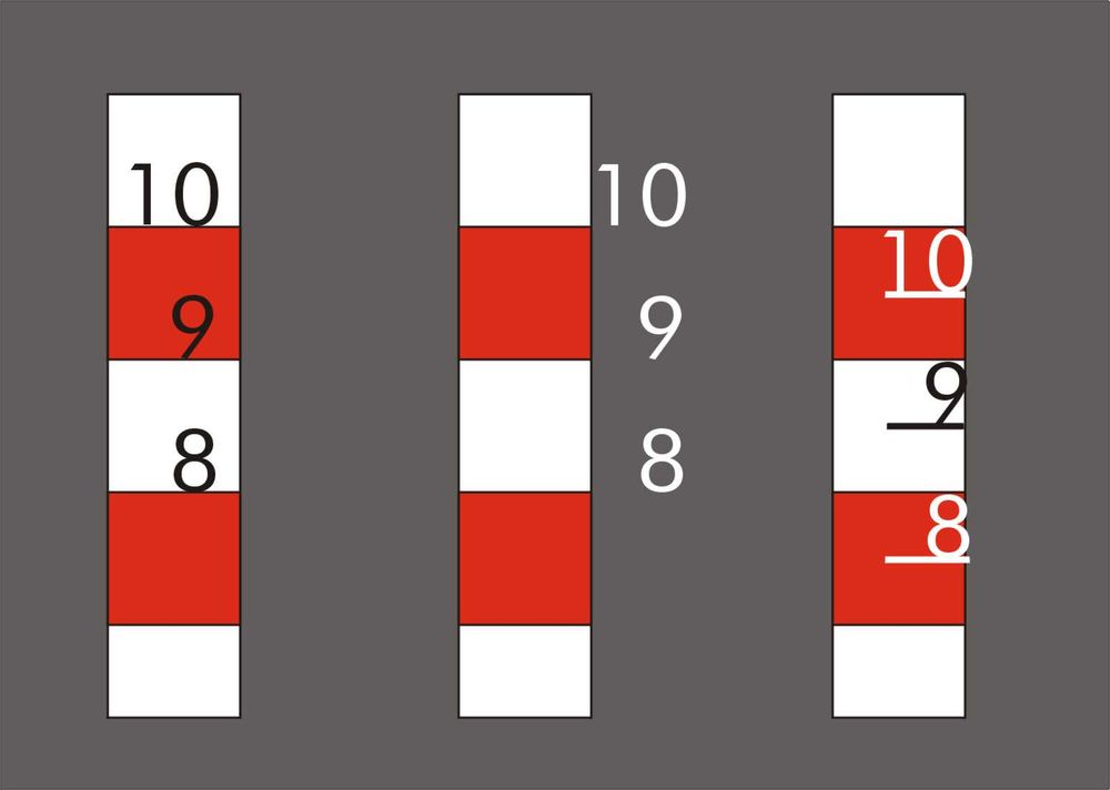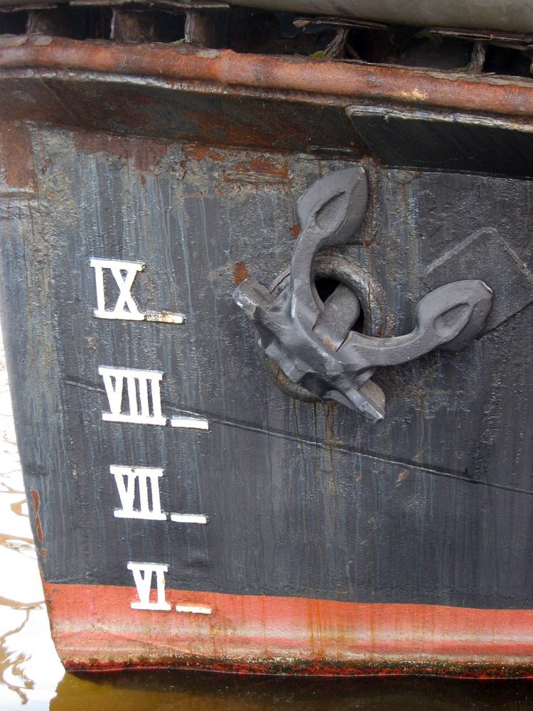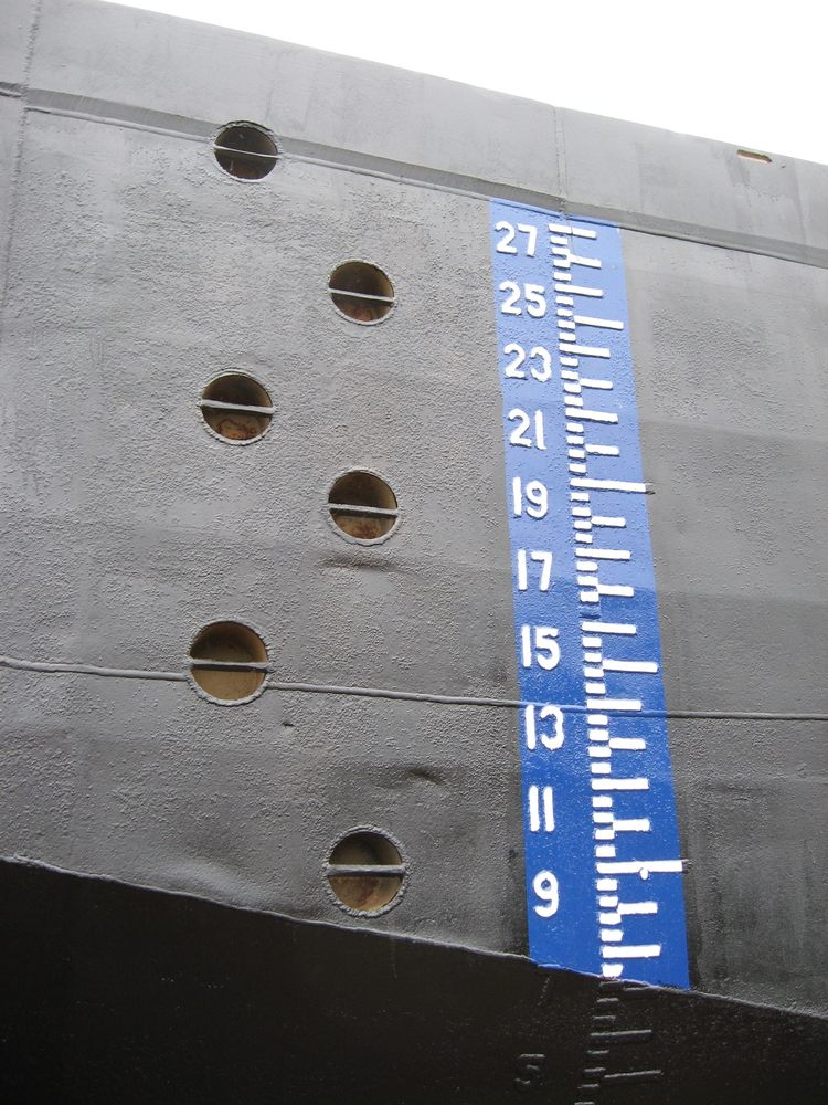 De schaalverdeling met Romeinse cijfers, die slechts van één zijde, maar dan wel op voor- en op achterschip zichtbaar moest zijn,