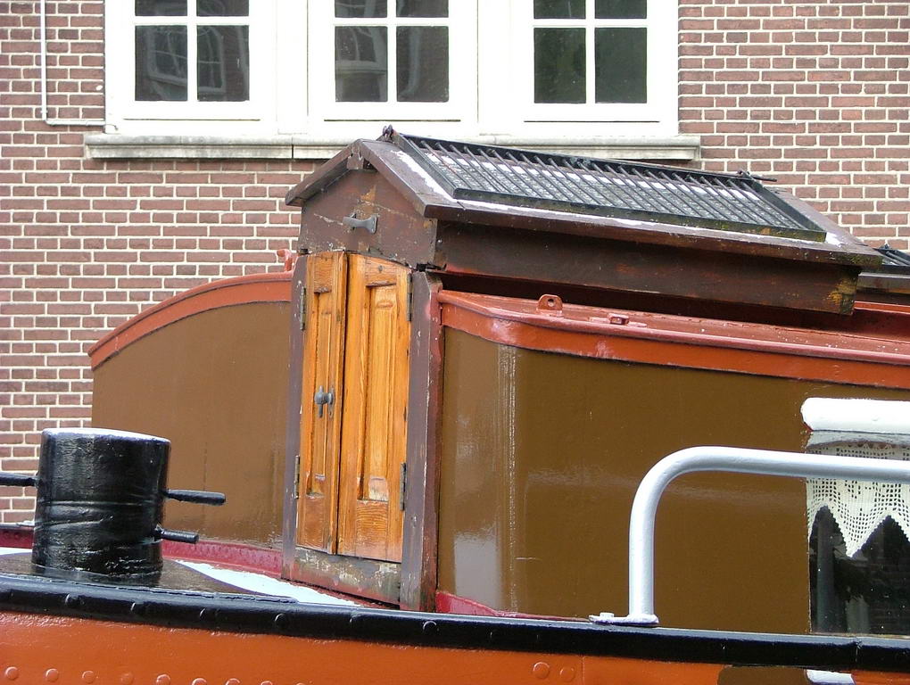 Voor op de roef de broekschoorsteen en tegen de voorkant van de roef het spalkdek waarop