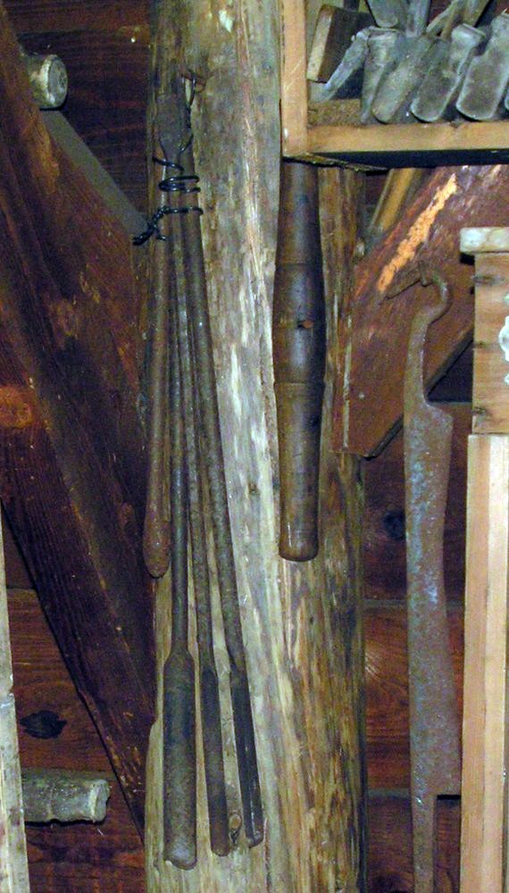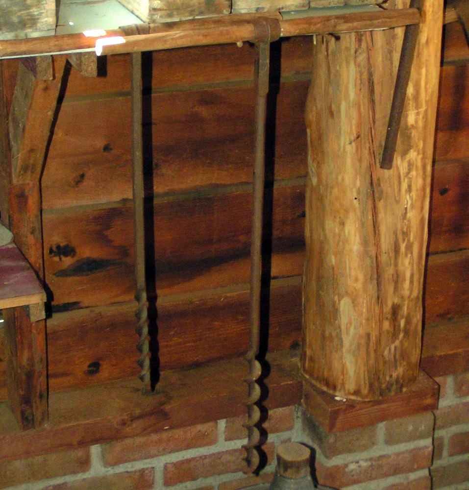 het verplaatsen van stammen en balken gebruikte men boomhevels.