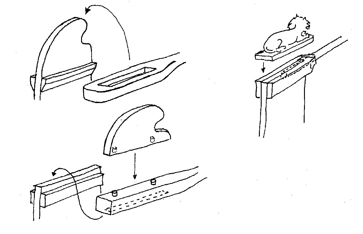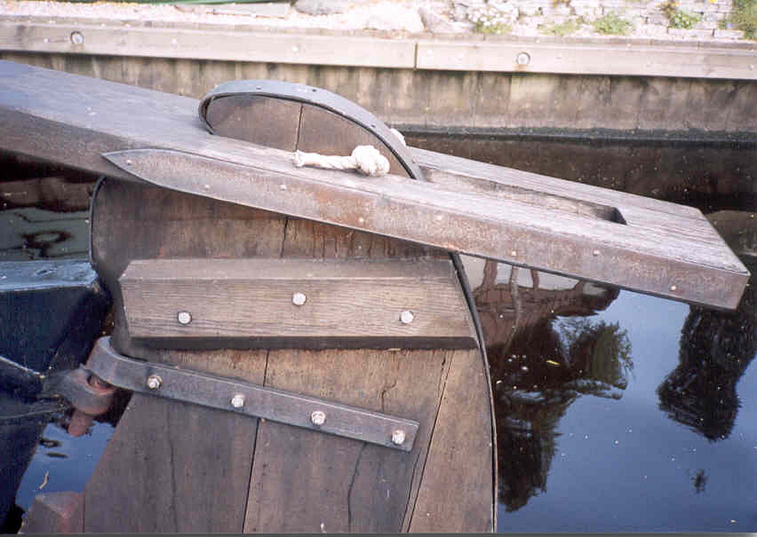Linksonder: het helmhout, dat over de kop van het roer valt en dat met een losse