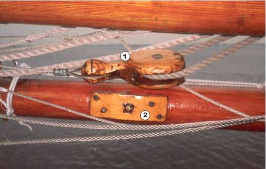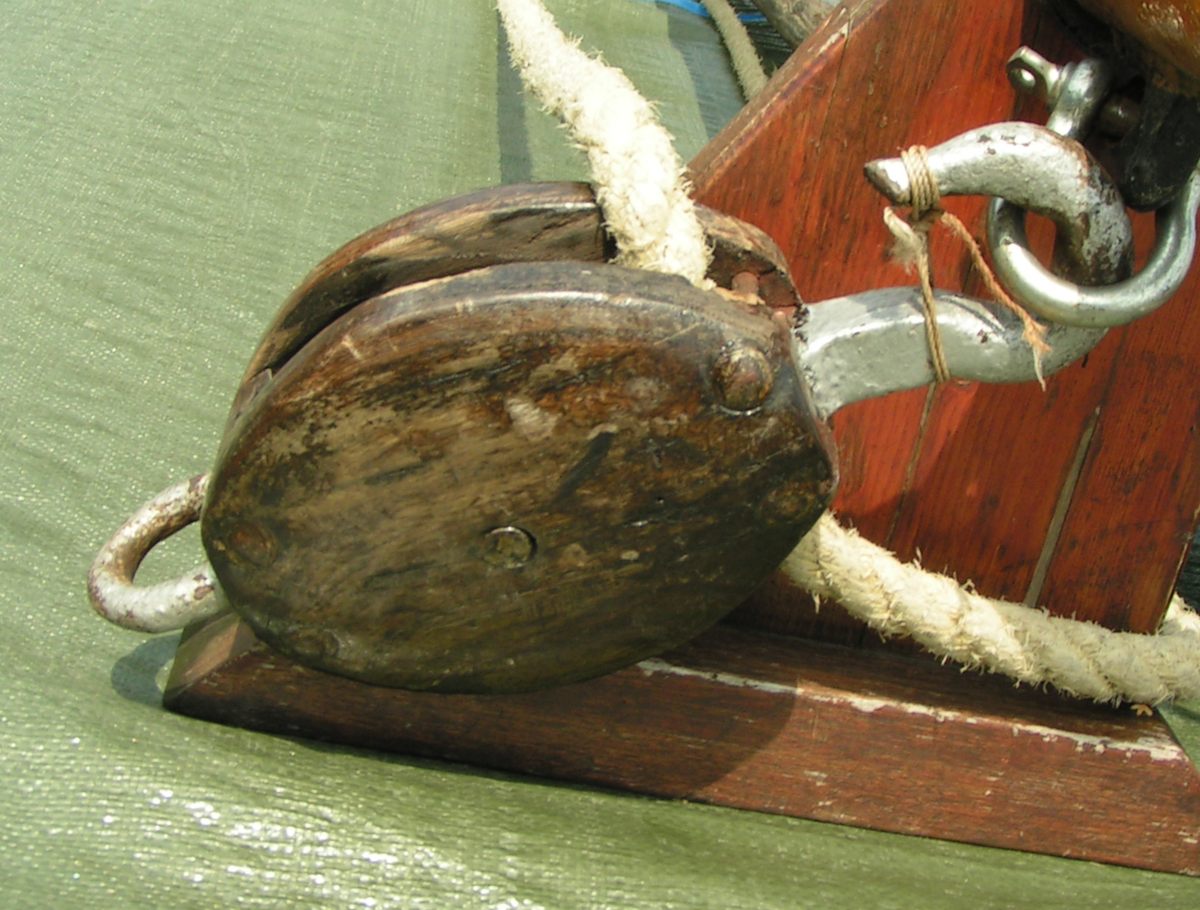 het geheel noemt men wel een bakstagblok, omdat het vaak voor de bakstag gebruikt werd.