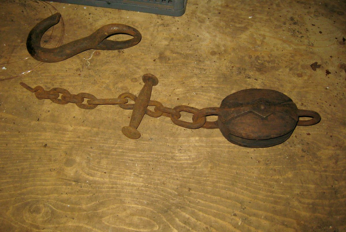 Dit hakblok heeft buitenbeslag en is voorzien van een hondsvot.