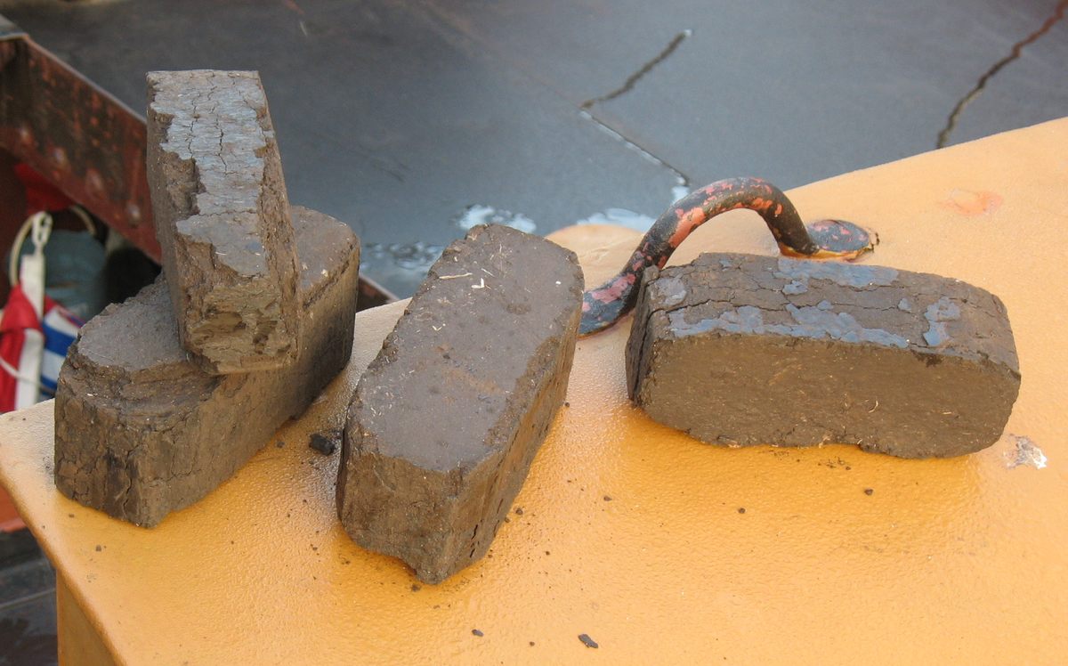 Tot briket geperste turf. Deze turven verkruimelen niet zo snel