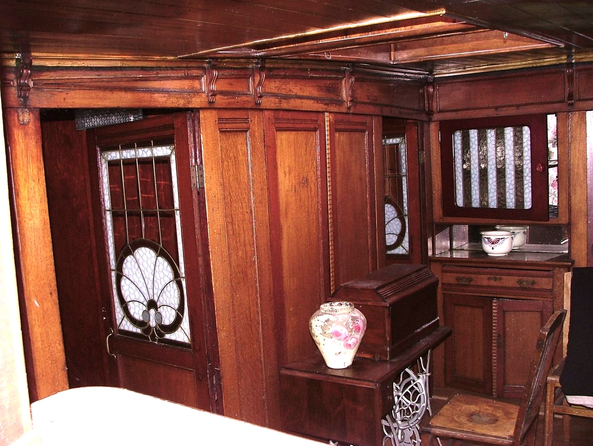 dit was. Dit interieur is ongekend luxe uitgevoerd, zoiets zag men niet vaak. De Belgische schippers waren trouwens meer op luxe ingerichte woningen gesteld, dan de Nederlandse schippers.