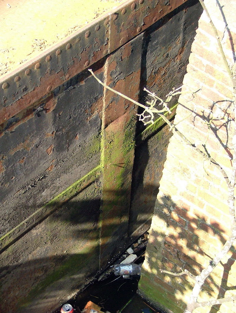 (vermoedelijk later) bijgelaste handvatten. Het moet hier vermoedelijk om vrij zware luiken gaan gezien