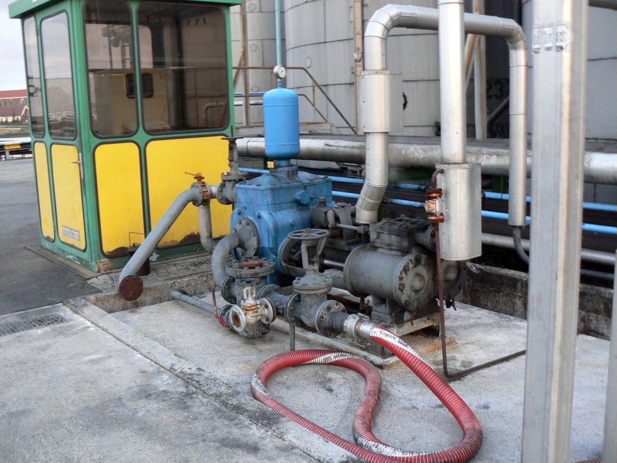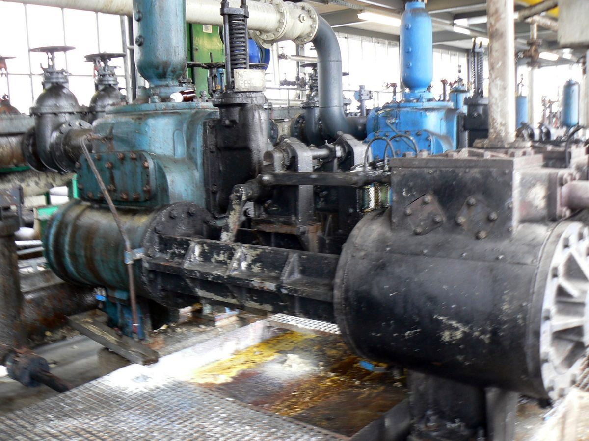 Een aantal van stoompompen bij een spijsolie verwerkend bedrijf.