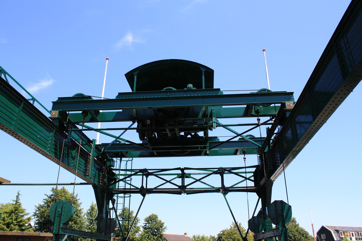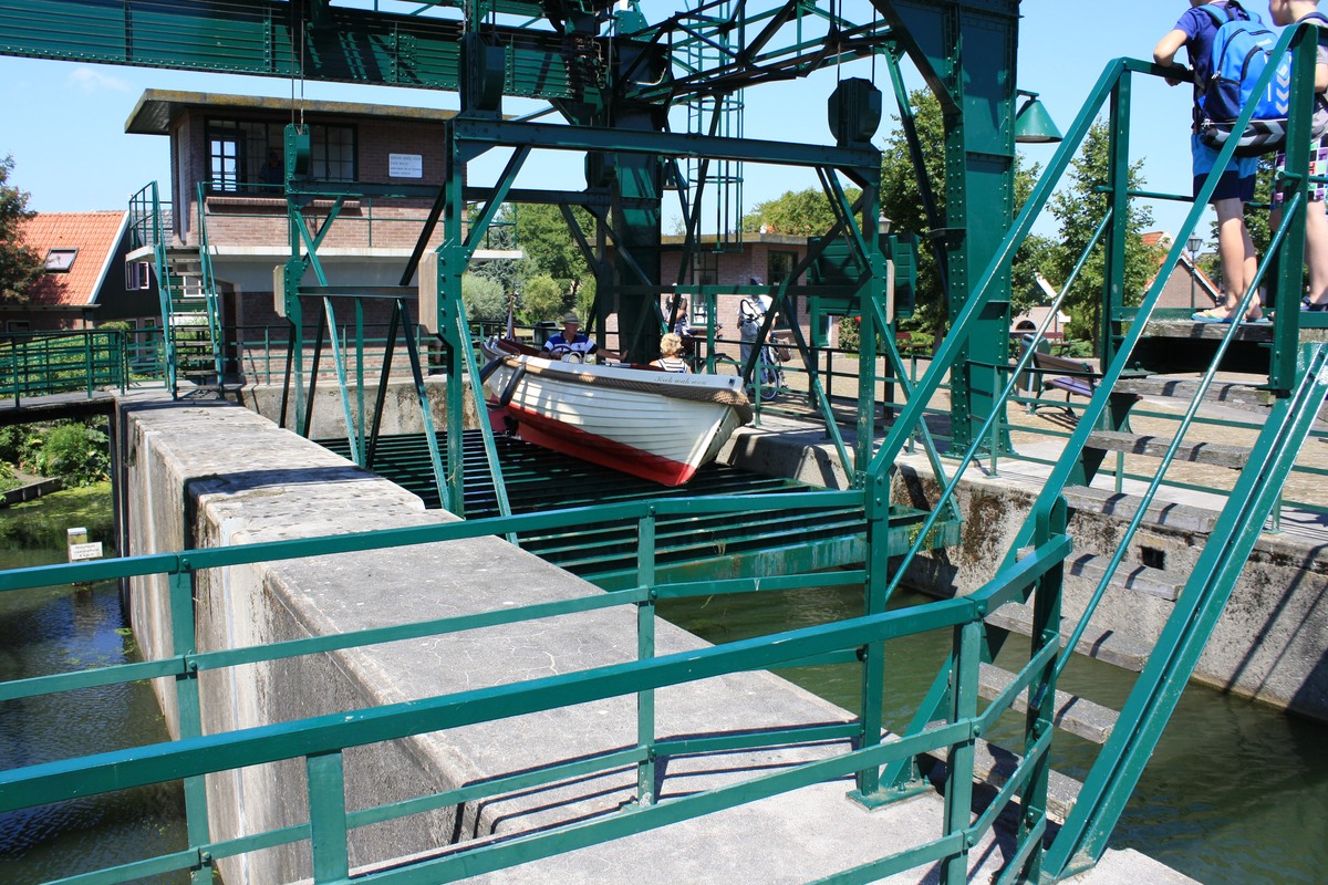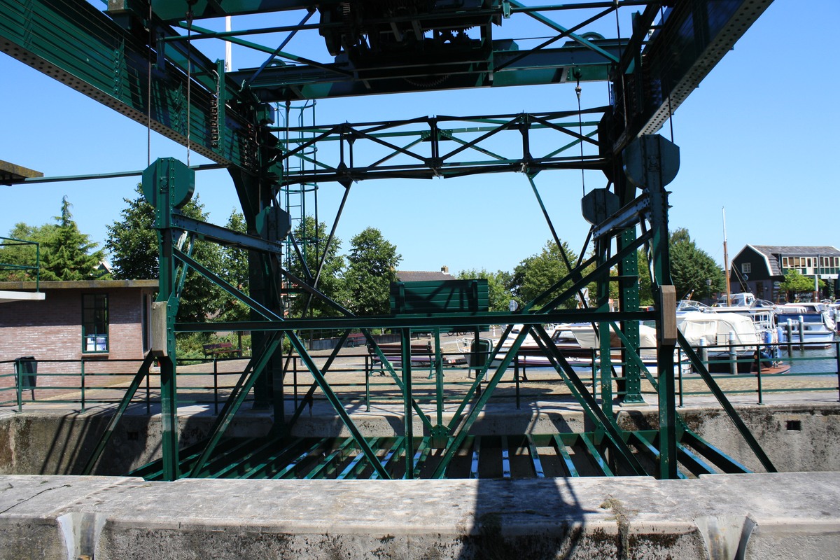 vaartuig en kooi door de electrische installatie omhoog gebracht worden. De lift is oorspronkelijk bedoelt voor schepen met een platte bodem en voor scheepjes met een diep stekende