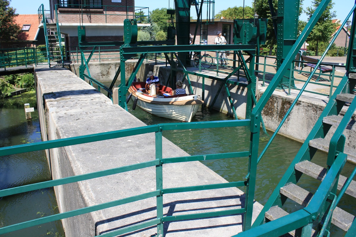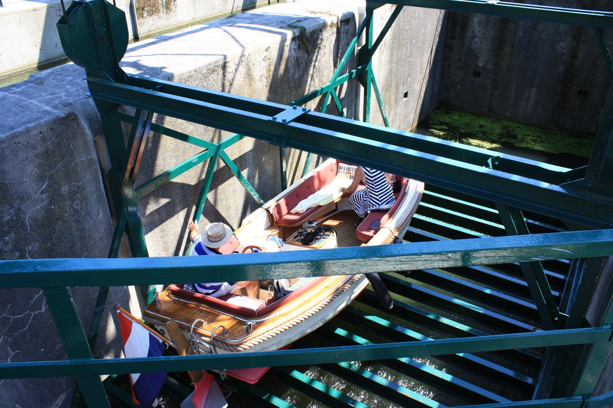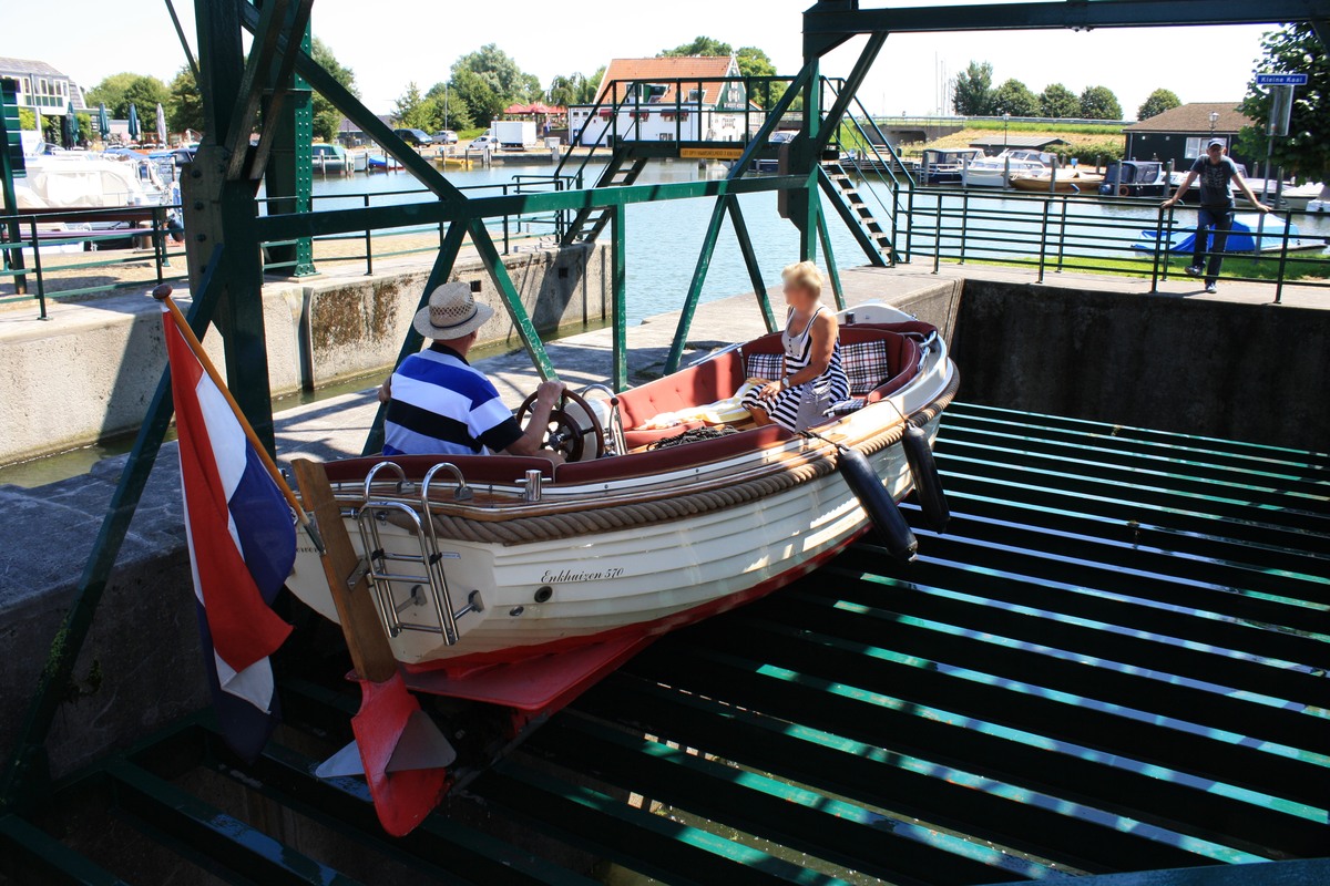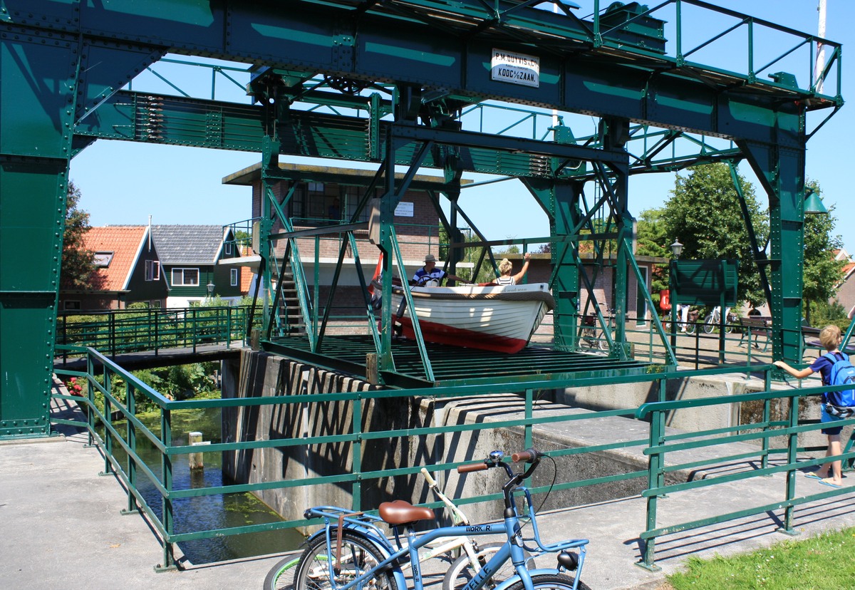 vaartuig en kooi door de electrische installatie omhoog gebracht worden. De lift is oorspronkelijk bedoelt voor schepen met een platte bodem en voor scheepjes met een diep stekende