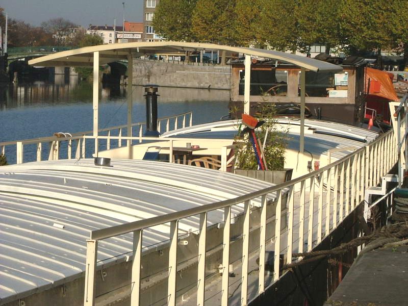 Een deel van de luiken zijn hergebruikt voor het maken van een afdakje. De reling rond het schip loopt met de