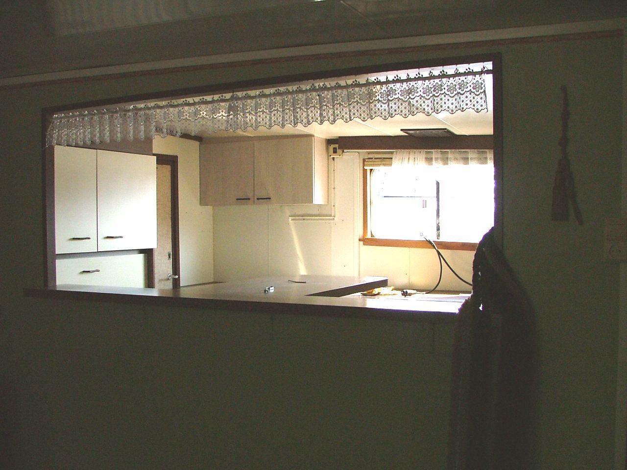 Een doorkijkje vanuit de woning naar de keuken in de onttakelde roef.