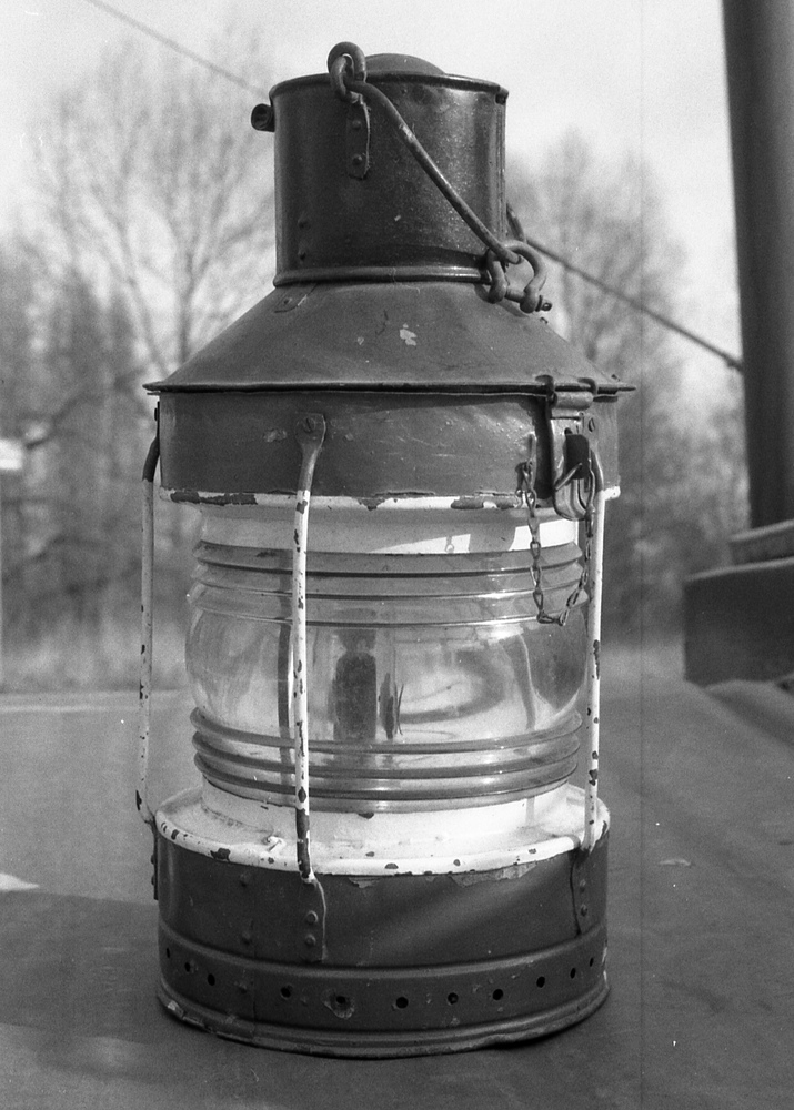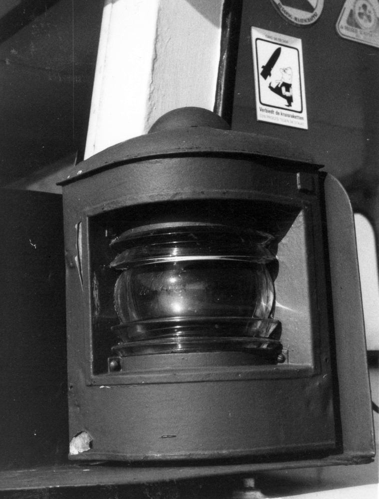 Een ankerlicht met petroleumlamp. Voor ankerlichten werden, vooral als men lag te