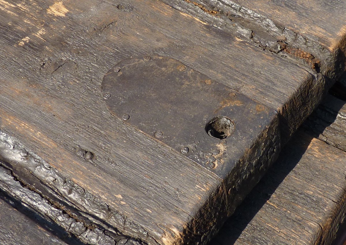 Een pas geteerde Friese luikenkap. * Zie ook detail hieronder.