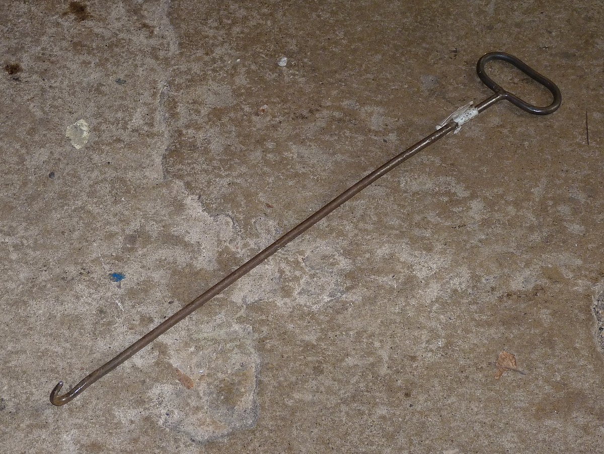 Alhoewel voor vele doeleinden bruikbaar is dit vermoedelijk een luikenhaak. De man die op de kapdeksel liep om de luiken te tillen, haakte deze onder de luiken wanneer dezen opgelicht moesten worden.