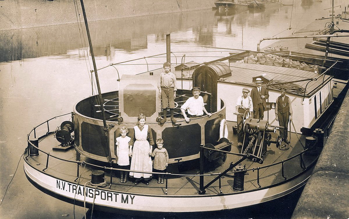 Een prachtig voorbeeld van stuurstand, bijgenaamd de 'erdaldoos' op een oud sleepschip met liggend stuurrad (haspel). Neem even de moeite de afbeelding op groot formaat te bekijken, want er valt heel wat te zien. Wat dacht U bijvoorbeeld van de draadhaspeltjes aan de stuurhutwand?