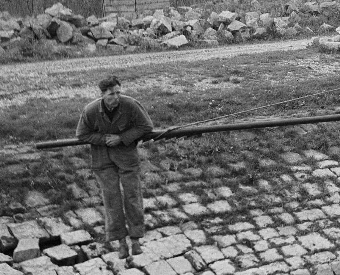 over het uiteinde gaat hangen en de boom vanzelf terugzwaait.