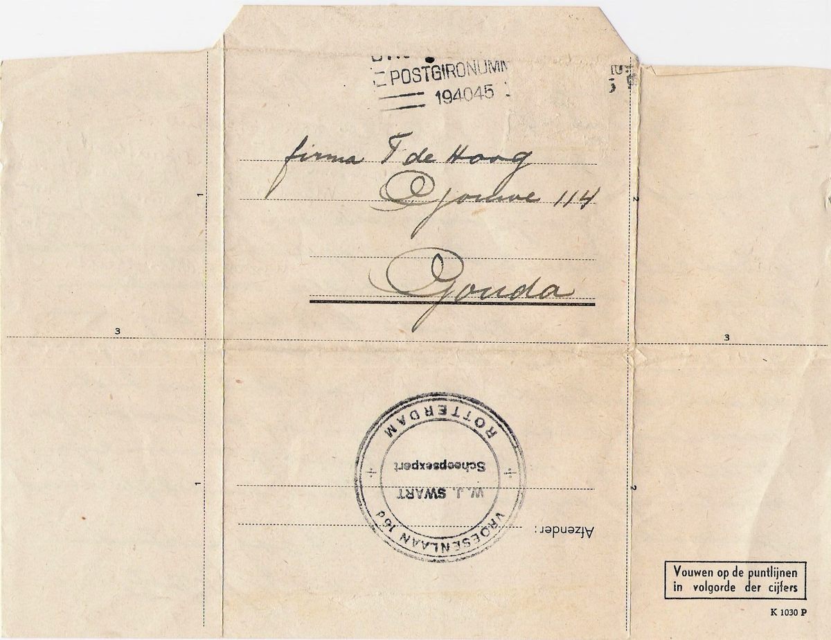 De buitenzijde van de enveloppebrief. Dit soort enveloppes werden soms