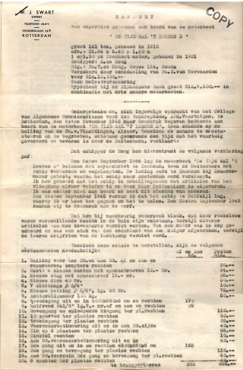 bovenstaande brief, moesten er nog herstelwerkzaamheden aan de motor/